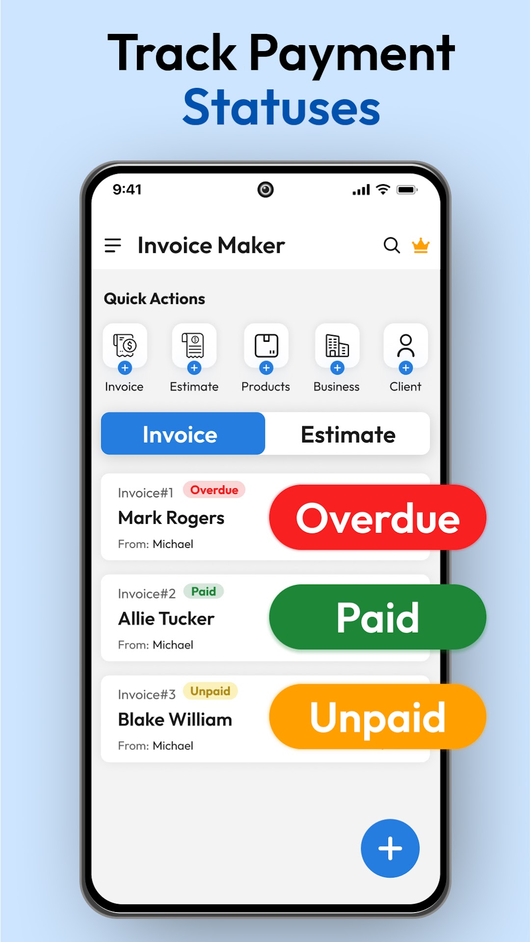 Effortless Invoice Creation: To create invoices and estimates just enter your client's details, add line items, and let the app handle the calculations.