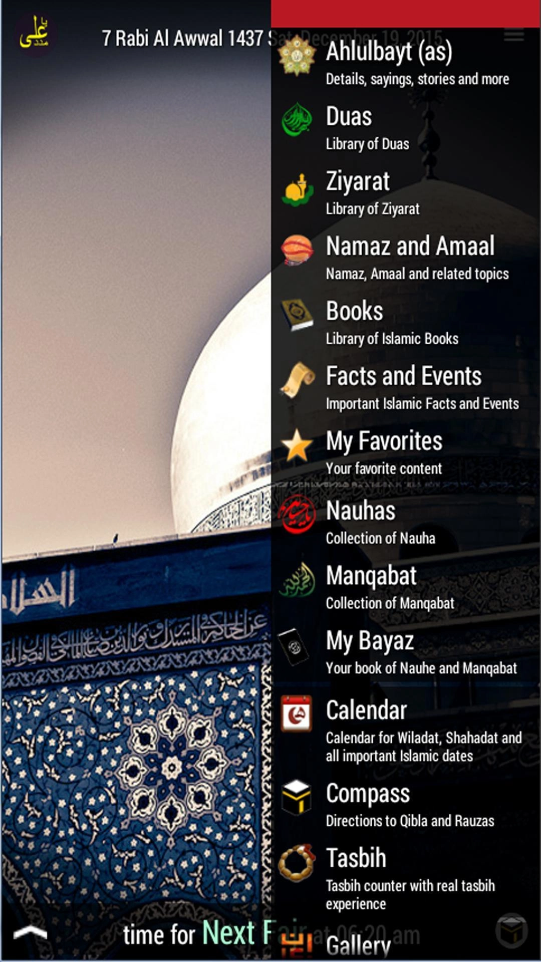 Shia Link is a huge library of Duas, Ziyarat, Amaal, Namaaz, Nauha and Manqabat with Translation/Transliteration, audio and video. It is a perfect tool for connecting to Allah (swt) with beautifully recited Azaan and visually rich interface depicting the