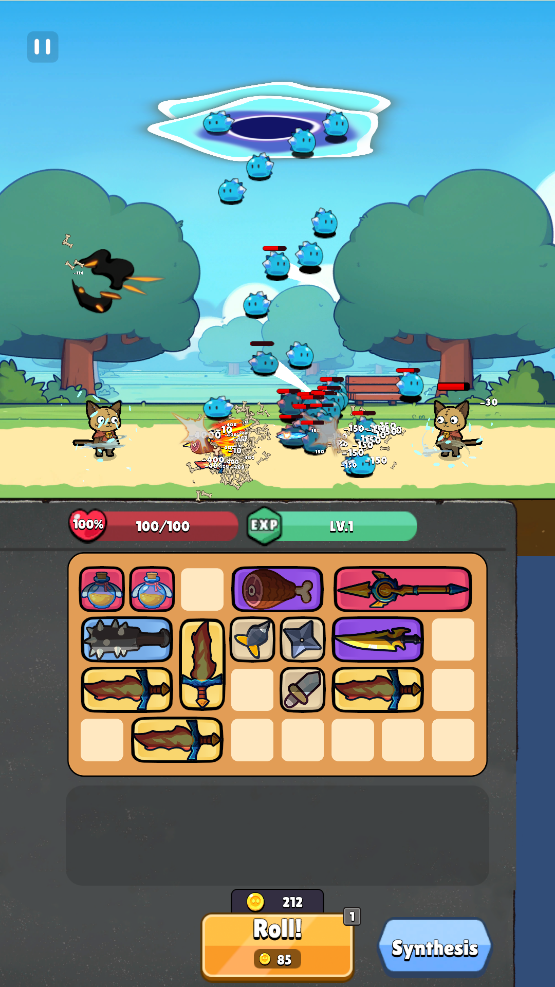 Spend gold to roll for randomized weapons with different rarities and effects. Got too many? Combine them into something new—maybe even something legendary.